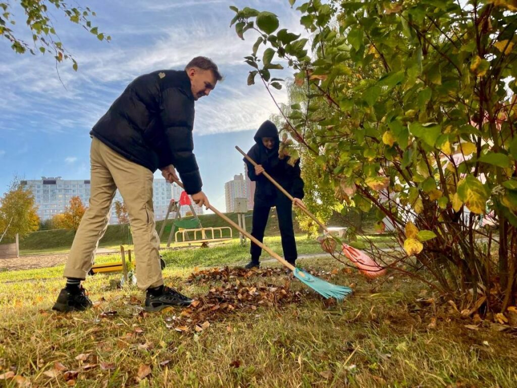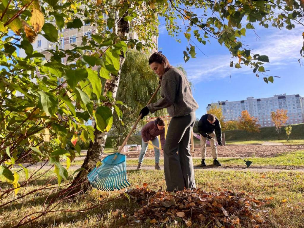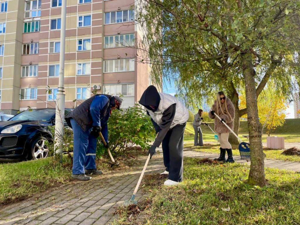 Молодежный совет при Совете Республики Национального собрания Республики Беларусь и Молодежный совет ЖКХ приняли участие в акции «Чистый двор — комфортная жизнь» и навели порядок на дворовой территории жилого дома № 70 по ул. Панченко.